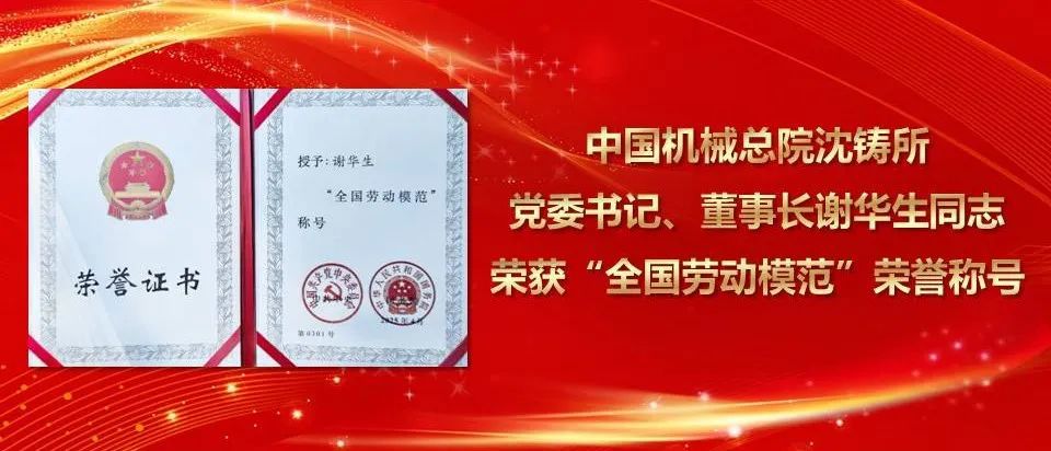 4月28日,全国劳动模范和先进工作者表彰大会在北京人民大会堂召开,中国星空体育(中国)总院集团沈阳铸造研究所有限公司党委书记、董事长谢华生荣获“全国劳动模范”荣誉称号。