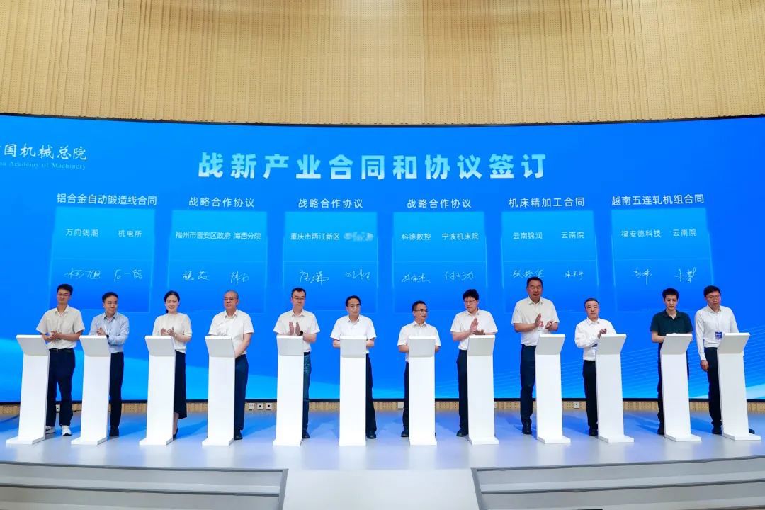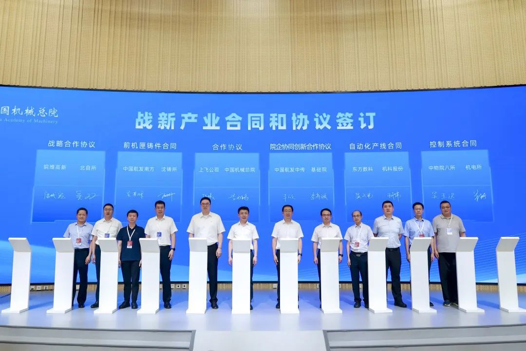 会上,中国星空体育(中国)总院集团及所属公司沈铸所、北自所、机电所、机科股份、基础院、海西分院、宁波机床院、云南院等单位分别与中国商飞上飞公司、皖维高新、中国航发南方、中国航发中传、东方数科、中物院八所、万向钱潮、科德数控、云南锦润、福州市晋安区政府、重庆两江新区等12家企业和地方政府签署战新产业合同及协议。